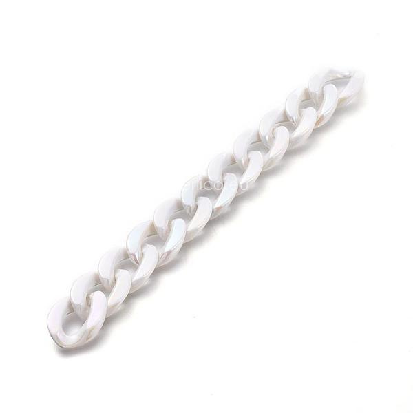 Akrilni lanac uvrnuti 23x17x5mm,1 metar, bijeli s preljevom