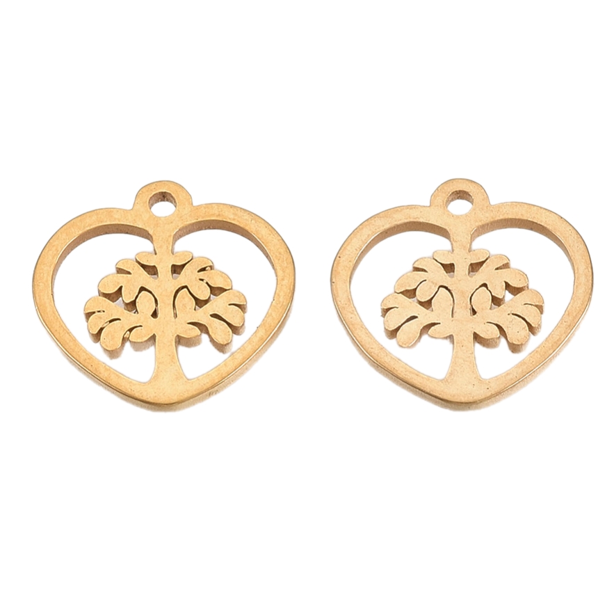 Privjesak “Drvo života” od nehrđajućeg čelika SS304 vel.10x10x1 mm 2 kom, boja:zlatna SS20