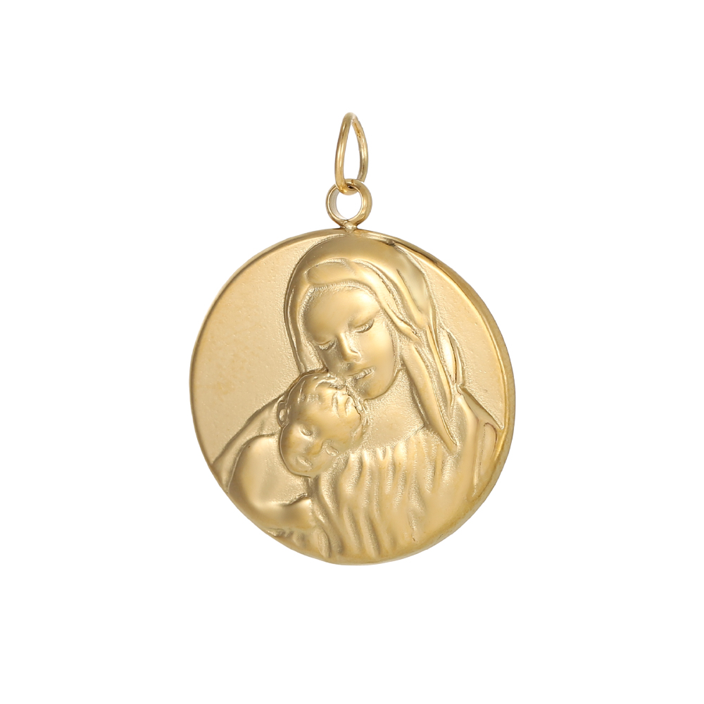 Privjesak Majka božja, nehrđajući čelik SS304, vel. 23×21 mm, 1 kom, pozlata 14 karat. zlatom SS10