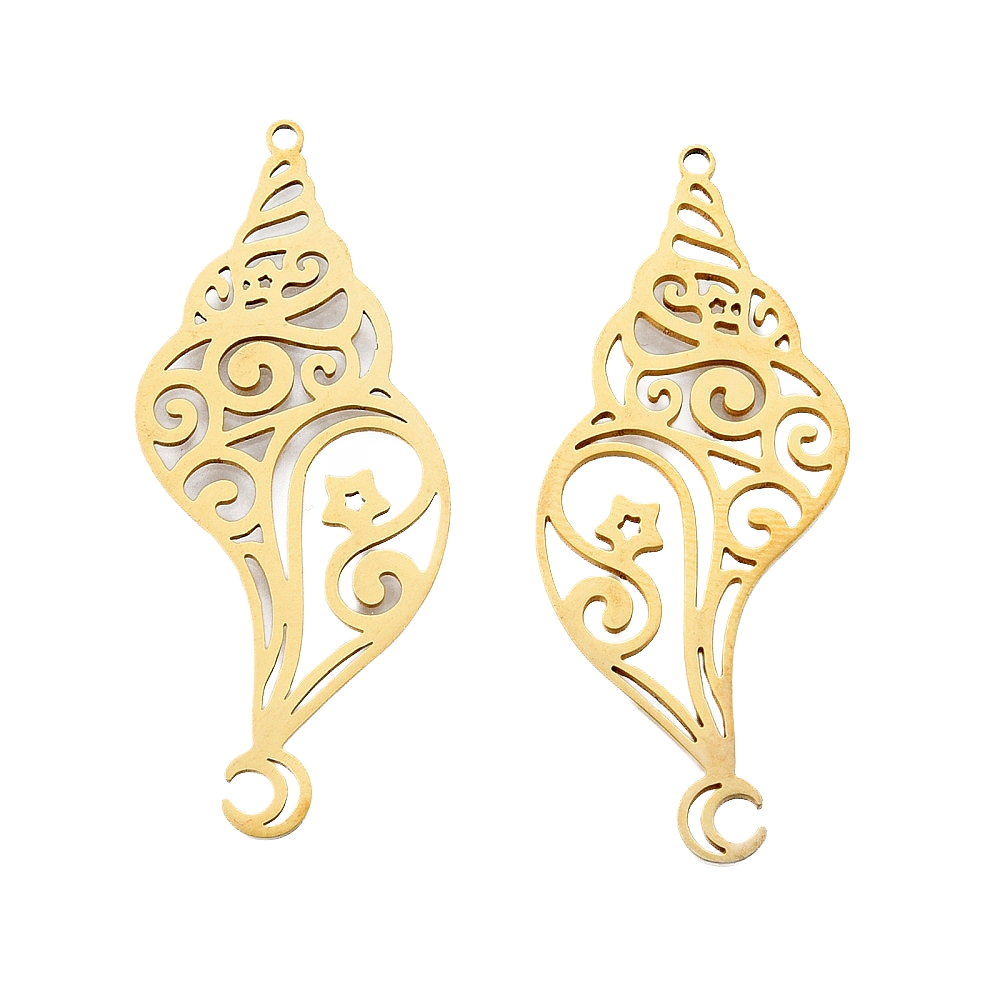 Privjesak Morski puž od nehrđajućeg čelika SS304 vel. 44,5x18x1 mm, alka 1,5 mm, pozlata 18 karat.zlatom,1 kom SS111