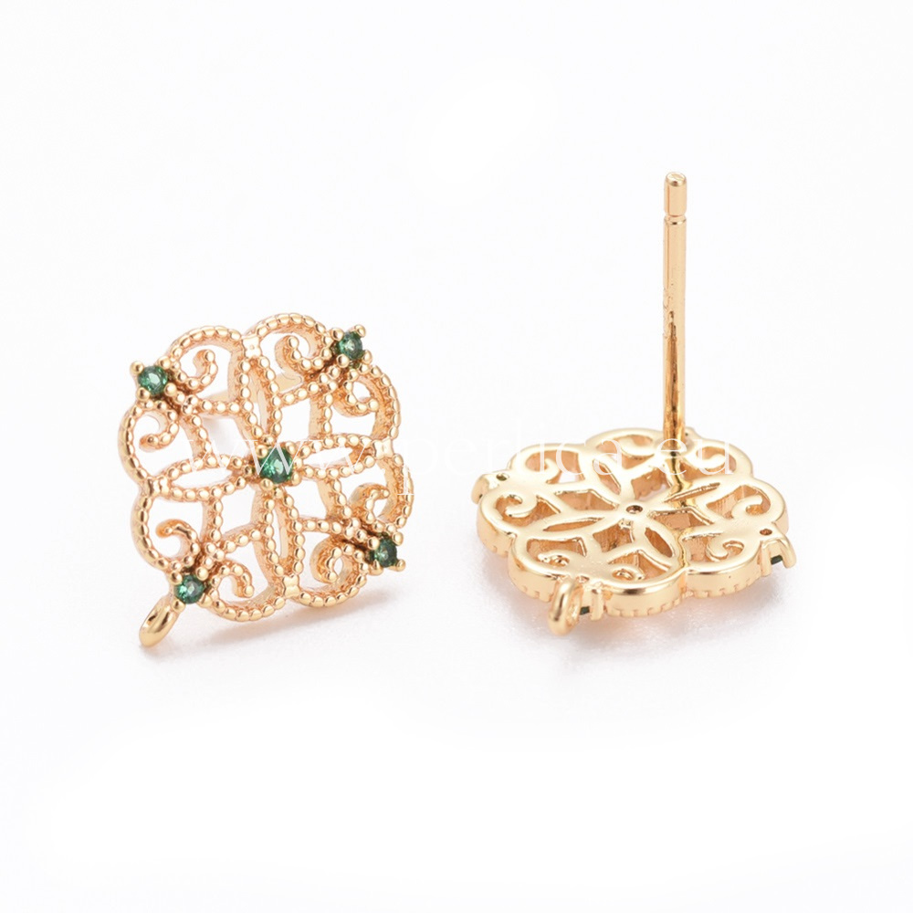 Kopče od mjedi, pozlačene s 18 k zlatom, s CZ cirkonijima, veličine 13×13 mm, 1 par