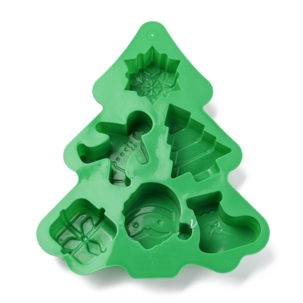 Kalup Božićna jelka. Pahuljica je velićine 55x48mm; Gingerbread Man: 67x54mm; Jelka 72x56mm; Poklon 50x49mm; Djed Mraz 57x57mm;