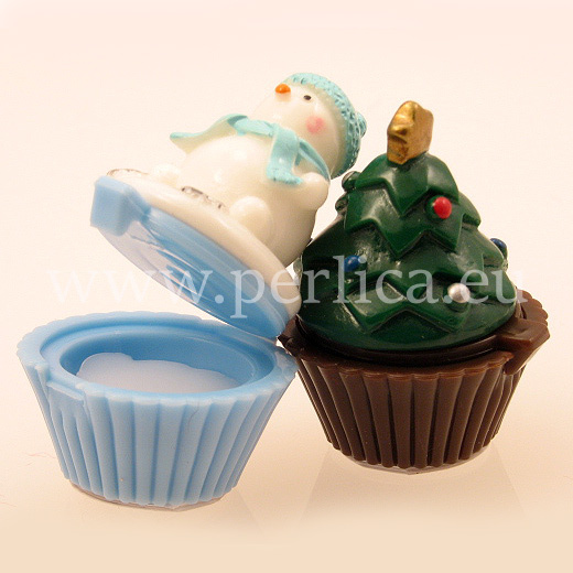 Lip gloss u formi božićnih kolača muffina : pingvin s mirisom božnih kolača – vanilije, Jelka s čokolodnim pepermintom, Djed Mraz s mirisom kolača od jabuka i cimeta, i snjegović s mirisom mente !Veličina figurica od 4 do 5 cm.