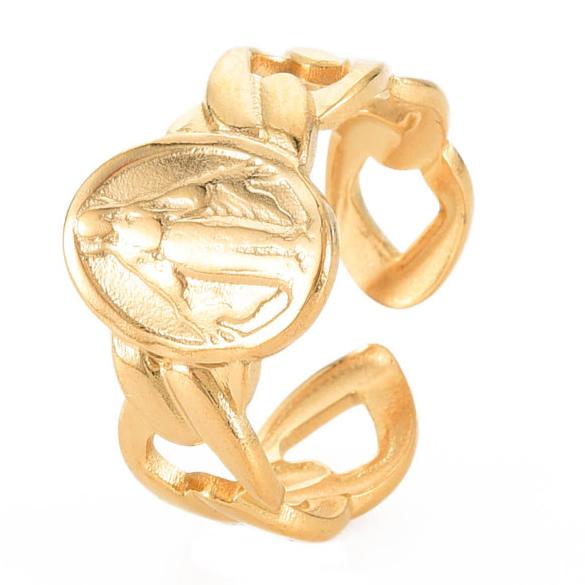 Prsten od nehrđajućeg čelika SS304 s medaljoniom Gospe, .