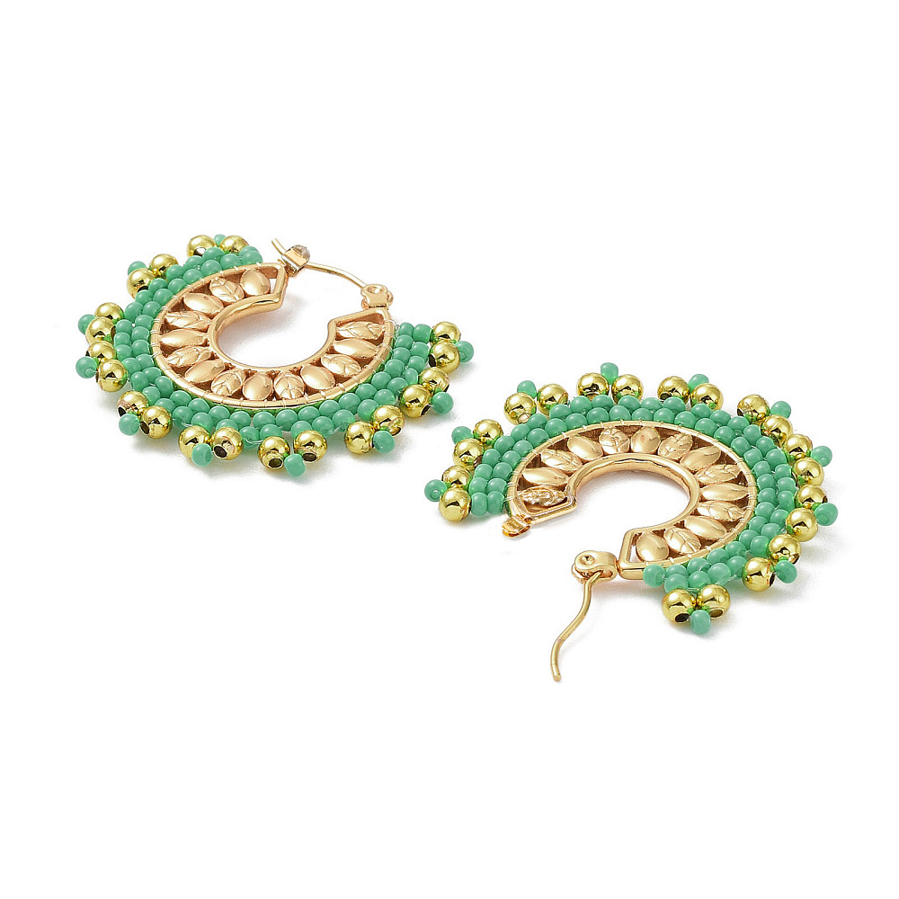 Naušnice su ukrašene japanskim staklenim perlicama .boje tirkizno zelene, vakum pozlata